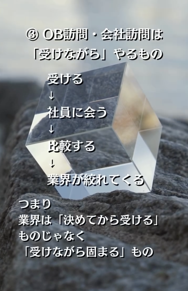 早期選考の落とし穴 業界を決めすぎる ③OB訪問・会社訪問は「受けながら」やるもの・・・