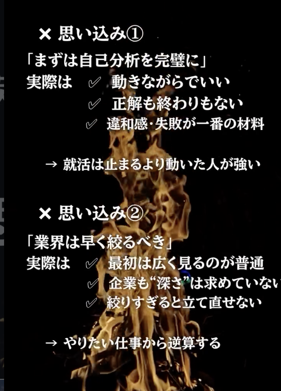 内定が遠ざかる4つの思い込み ①「自己分析を完璧に」→実際は ②「業界は早く絞るべき」